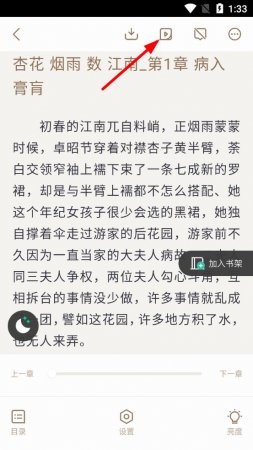 3、在阅读界面中,点击顶部的朗读图标类似播放的标志,即可设置并开启朗读功能。