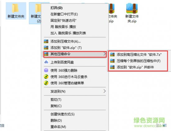 1.首先在下载安装好360压缩软件后,我们找到需要压缩的一个或者多个文件夹,选中后我们鼠标右键点击选中的文件,就会弹出菜单栏,如下图所示,在菜单栏中我们就可以看到有“添加到压缩文件”、“添加到xx.zip”以及其他压缩命令三个选项,一般我们常用的是前两个。