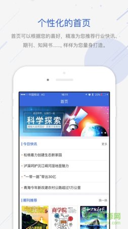 手机知网app除了可以让用户在手机上查看中国知网中的期刊文献以外,还可以订阅期刊,报纸,拥有专属自己的阅览室。更有手机摇一摇功能,精品文章随机出现,给你惊喜。