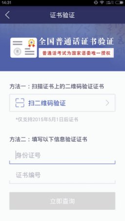 普通话学习测试APP可以在手机上进行普通话考试成绩查询的应用程序,并且它是国家语委官方唯一授权的查询系统,可以方便查询你的考试成绩,普通话等级,你只需要通过客户端给出的二维码扫描即可验证你的证书信息,对于那些普通话等级考试的学员非常的实用,欢迎下载!