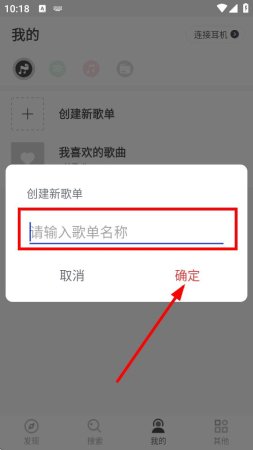 4、输入完成后点击确定,即可成功创建一个新的歌单,之后可以往歌单中添加喜欢的歌曲。