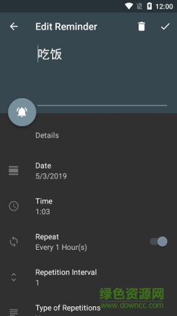 本App是一个简单的用户友好的提醒应用。有重复提醒功能,设定的时间间隔以分钟、小时、天,周和月,完全免费,无广告,希望大家喜欢。在设置提醒时,通过设置描述、日期、时分、重复间隔、重复间隔时间单位来完成。