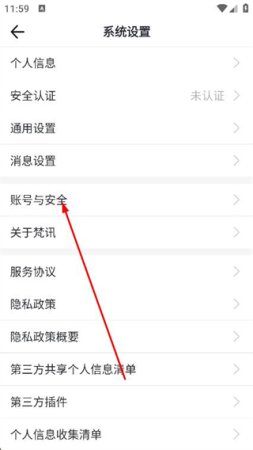 3、进入系统设置页面后,找到并点击账号与安全选项。