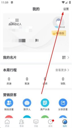 2、在我的页面中,找到并点击右上角的设置选项。