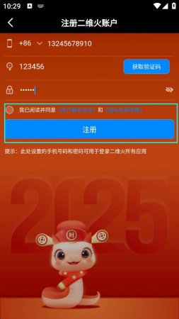 3、填写好注册信息后,勾选我已阅读并同意用户服务协议和隐私权政策,接着点击“注册”按钮,完成注册流程。