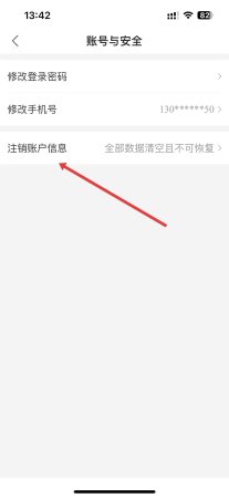 4、在账号与安全页面中,点击注销账户信息选项,进入注销账户页面。