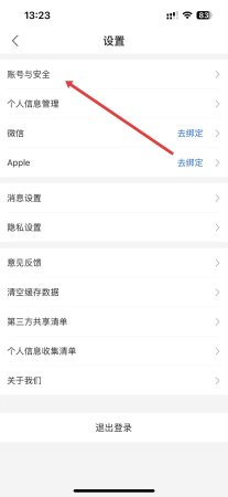 3、在设置页面里,点击账号与安全选项,进入账号安全相关设置页面。