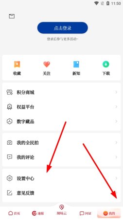 1、打开新华社APP,进入我的个人页面,找到并点击设置中心选项,进入设置界面。