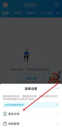 2、在设置页面中,找到服务区域设置选项,不同版本可能显示为接单区域、工作区域等,点击进入区域选择界面。