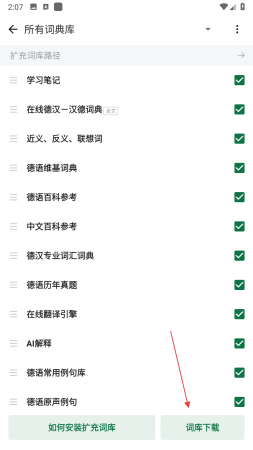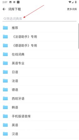 2、在词典库管理页面,点击词库下载按钮,进入词库下载界面。