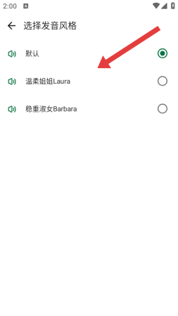 4、进入选择发音风格页面,选择喜欢的发音风格,如温柔姐姐Laura。