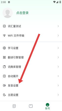 2、在账号的页面我们需要点击发音设置,进入发音设置的界面。