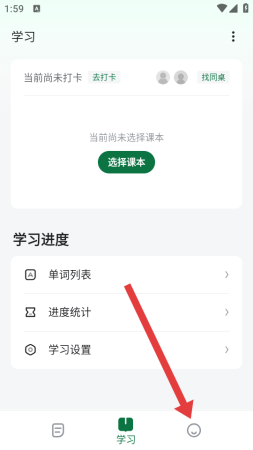 1、在学习的页面点击右下角账号的按钮,进入个人功能页面。