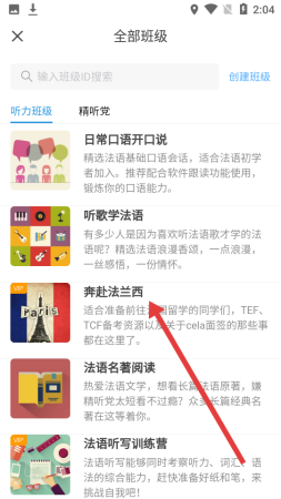2、在全部班级页面,浏览并选择你想加入的班级,如奔赴法兰西。