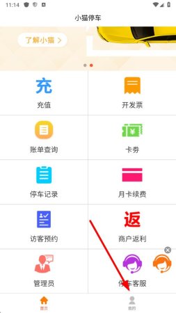 1、打开小猫停车app,点击底部导航栏中的我的选项,进入个人中心页面。