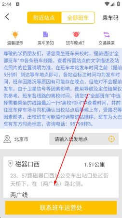 4、输入完成后,系统会显示相关的班车站点信息,选择离你较近的班车站点。
