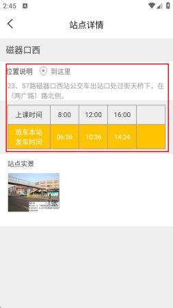 6、在站点详情页面,你可以查看班车的位置说明、发车时间等详细信息。