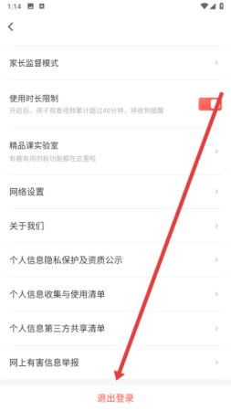 2、进入到设置页面,通过下拉找到底部的退出登录按钮,并点击开始退出操作。