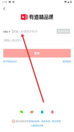 4、在进入到登录页面中,点击输入框填写要更换账号的手机号,以便获取验证码后完成登录。