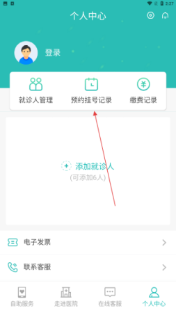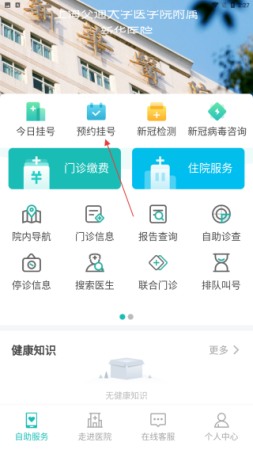 2、在自助服务页面,找到并点击预约挂号按钮,这将进入挂号流程的关键步骤,为选择就诊科室和医生做准备。
