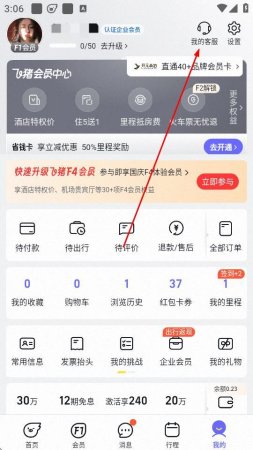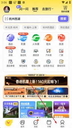1、打开飞猪旅行APP,点击底部导航栏中的我的选项。