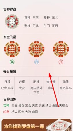 3、进入详情页面后,可查看吉神罗盘、玄空飞星、每日星耀等详细黄历内容 。