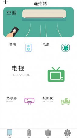 集电视遥控、空调遥控、机顶盒遥控、扫地机器人遥控、灯具遥控、电扇遥控、空气净化器遥控、投影仪遥控、热水器遥控等13种家电于一体的家居智能关怀软件