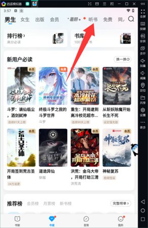 1、首先打开qq阅读app,进入软件后点击界面上方的听书按钮;