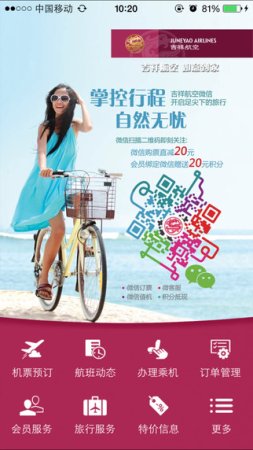 吉祥航空app为您提供优质的一站式服务,包括:机票预定、手机值机、退改/升舱、航班动态、额外行李购买等。 快来下载使用吧。