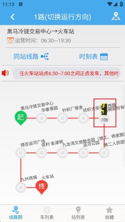 4、进入1路公交详细信息页面后,能查看其运营时间、同站线路、时刻表以及线路图等内容,清楚了解1路公交的运行情况。