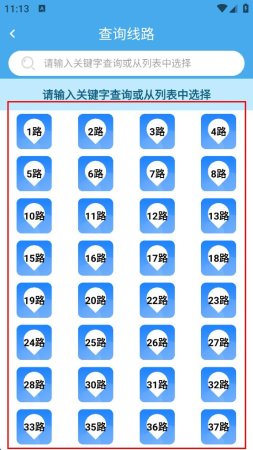 2、在应用主界面,找到“公交车”选项,点击该选项,进入查询线路界面,准备选择要查询的公交路线。