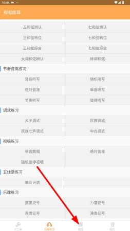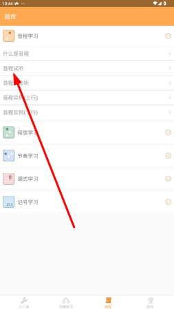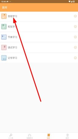 1、打开音乐学习类应用,在视唱练耳界面点击底部题库选项。