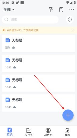 1、打开讯飞语记应用,点击界面右下角蓝色带有+号的按钮。
