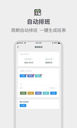 1. 周期轮班自动排班,根据您的轮班周期,自动生成一年排班计划;