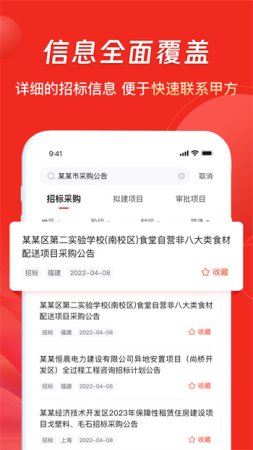 千里马招标网是一款专注于招投标产业链的信息、服务招标app。每天更新招标信息近20000条。信息包括招标信息、拟在建项目、在建项目、独家项目等。针对用户关心的招标信息可进行收藏管理,项目更新或者变化给予用户提醒通知。方便用户管理招标信息。快来下载使用吧!