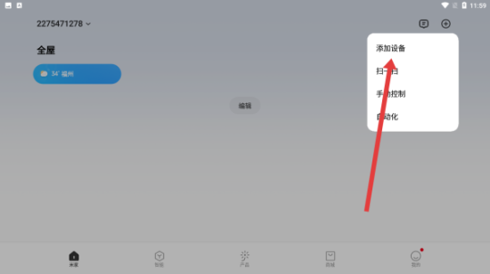 1、在米家主页中,点击右上角的添加设备按钮,即可跳转到添加设备页面。