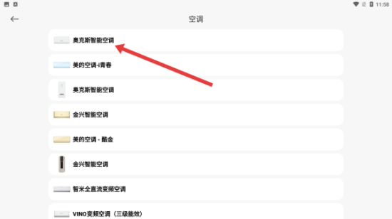 3、可以在空调添加页面中点击选择自己的空调型号比如奥克斯智能空调。