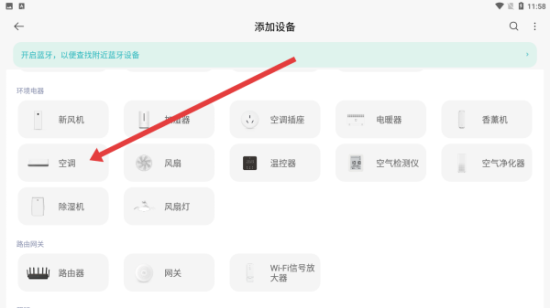 2、在进入到添加设备页面中,找到空调图标的区域点击进入添加空调。
