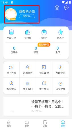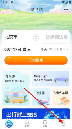 1、打开出行365App,点击首页下方导航栏中的我的进入个人中心页面。