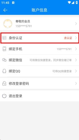 3、在账户信息界面中找到身份认证选项并点击,进入身份认证页面。