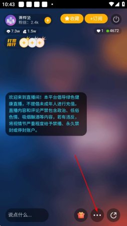 2、进入直播页面后,点击右下角的...更多选项按钮。