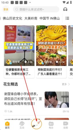 1、打开花生FM应用,点击底部导航栏中间的直播图标。