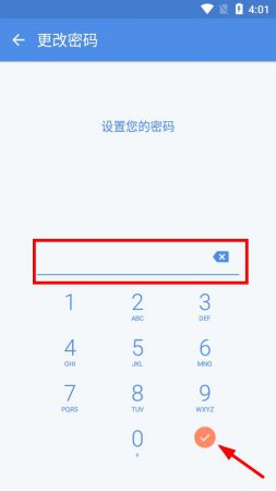 5、在设置您的密码界面输入新密码,最后点击下方对勾图标确认,即可完成密码修改。