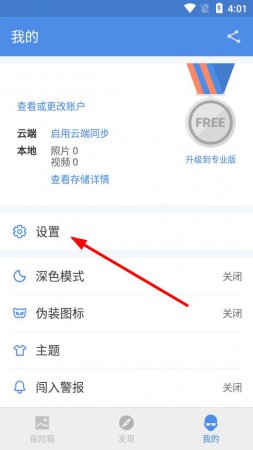 1、打开照片保险箱app,点击底部导航栏最右侧我的选项,进入个人相关界面。