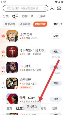 2、点击后页面会显示预约成功的提示,这就表明已经成功预约该游戏。