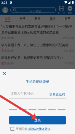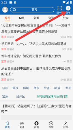 1、进入曲靖M APP后,需要点击右上角发布的按钮,进入下一步。