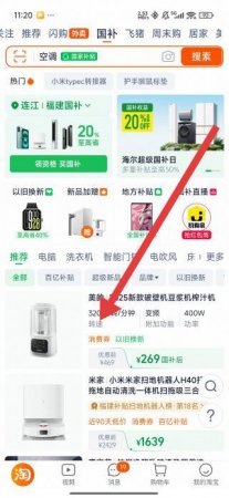 1、在淘宝首页点击国补标签,进入国家补贴商品专区,浏览各类享受补贴的商品信息。