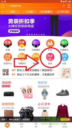 二、在淘宝首页点击“拍卖”即可进入到内置页面中。