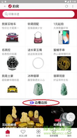 三、选择“边看边拍”就可以在线拍卖实物了。