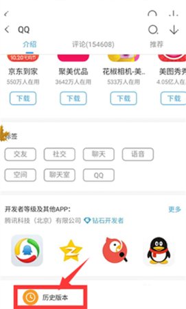 2、随后,点击软件进入到详情页,并向下滑动,找到最下方【历史版本】,如下图所示;